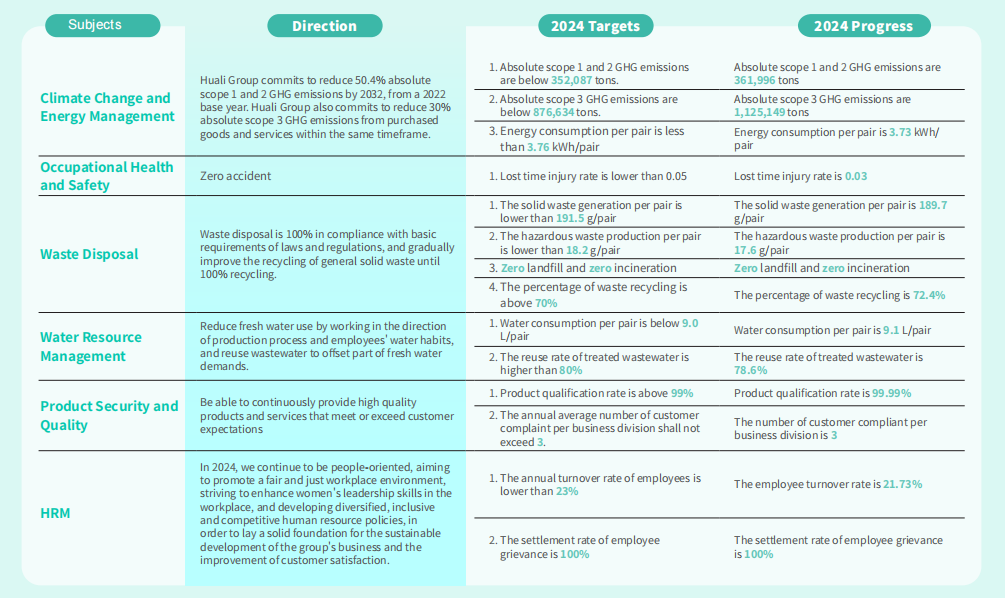 Huali Group fully recognizes the potential impact of sustainable development performance on its operations, actively promotes sustainable development strategies, and establishes a comprehensive management system for ESG risks and opportunities, setting relevant indicators and targets for environment, society, and governance.