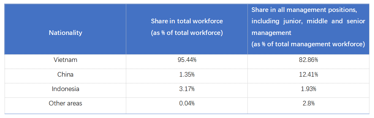 In order to better safeguard the legitimate rights and interests of employees of the Group and build good labor relations, there are trade unions in factories in Vietnam and China. The basic duty of a trade union is to represent and safeguard the legitimate rights and interests of employees. Through equal consultation and collective contract system, the management of each factory and the trade union promote and improve the coordination mechanism of labor relations, safeguard the labor rights and interests of employees, and build harmonious labor relations. When the Company develops or updates rules and regulations, it shall announce and implement the same after reaching an agreement with the trade union. When employees' labor rights and interests are damaged, the trade union provides timely help and actively communicates and coordinates with factory management to protect employees' interests; trade unions regularly communicate with the management and put forward suggestions or proposals to it. Trade unions in Vietnam and China have set up women worker committees, labor dispute mediation committees, labor protection supervision committees, labor law supervision committees and audit committees, which are elected by employee representatives. The employee representative meeting is held every month in Vietnam, and once every quarter in the trade union in China, to listen to the opinions and suggestions of employee representatives and solve the practical issues of employees through consultation. On behalf of employees, the trade union negotiates with the Group to sign collective contracts on working conditions, treatment, human rights, training and development, which cover all employees and are signed once every three years.
